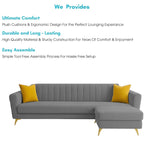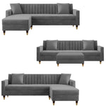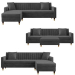 Grayon 3 Seater Convertible Sofa Set for Living Room, 3 Seater & Ottoman Modular Sectional Couch for Small Space (Black Colour) Fabric Sofa Set