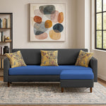 Casaliving Premium Lifestyle Fabric 4 Seater L Shape Sofa Set 3 Seater Modern Sofa Set & Ottoman for Living Room (Black Color)