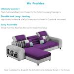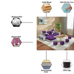 Samra LHS 4 Seater L Shape Sofa Set with 4 Puffy for Living Room (Purple Grey Fabric) Premium Fabric Sofa