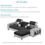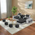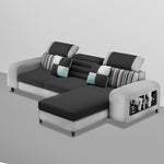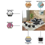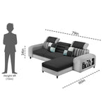 Samra RHS 4 Seater L Shape Sofa Set with 4 Puffy for Living Room (Black Grey Fabric) Premium Fabric Sofa