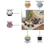 Samra RHS 4 Seater L Shape Sofa Set with 4 Puffy for Living Room (Brown Grey Fabric) Premium Fabric Sofa