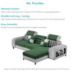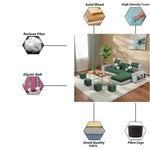 Samra RHS 4 Seater L Shape Sofa Set with 4 Puffy for Living Room (Green Grey Fabric) Premium Fabric Sofa