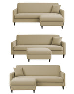 Valkyrie 4 Seater L Shape Convertible Sofa Set for Living Room, 3 Seater & Ottoman Modular Sectional Couch for Small Space (Cream Colour) Fabric