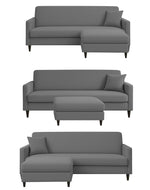 Valkyrie 4 Seater L Shape Convertible Sofa Set for Living Room, 3 Seater & Ottoman Modular Sectional Couch for Small Space (Dark Grey Colour) Fabric