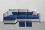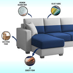 Aden LHS 4 Seater L Shape Sofa Set with 2 Puffy for Living Room (Blue Grey Colour Fabric) Premium Fabric Sofa Set for Living Room