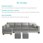 Aden LHS 6 Seater L Shape Sofa Set with 2 Puffy for Living Room (Dark Grey Grey Colour Fabric) Premium Fabric Sofa Set for Living Room