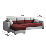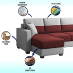 Aden LHS 6 Seater L Shape Sofa Set with 2 Puffy for Living Room (Maroon Grey Colour Fabric) Premium Fabric Sofa Set for Living Room