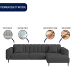 Damian RHS 4 Seater L Shape Sofa Set for Living Room (Black Colour Fabric) Premium Fabric Sofa Set for Living Room