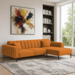 Damian RHS 4 Seater L Shape Sofa Set for Living Room (Orange Colour Fabric) Premium Fabric Sofa Set for Living Room