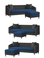 Casaliving Doraldo 4 Seater L Shape Convertible Sofa Set for Living Room, 3 Seater & Ottoman Modular Sectional Couch for Small Space (Black Blue Colour) Fabric
