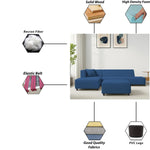 Casaliving Geletin 6 Seater LHS L Shape Sofa Set with Ottoman for Living Room (Blue Fabric) Premium Fabric Sofa