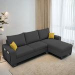 Casaliving Porto RHS 4 Seater L Shape Sofa Set for Living Room (Black Fabric) Premium Velvet Fabric Sofa Set - Black