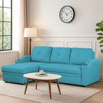 Casaliving Ravonna LHS 4 Seater L Shape Corner Sofa Cum Bed for Living Room (Blue Fabric) Premium Fabric Sofa