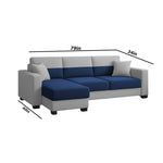 Aden LHS 4 Seater L Shape Sofa Set with 2 Puffy for Living Room (Blue Grey Colour Fabric) Premium Fabric Sofa Set for Living Room