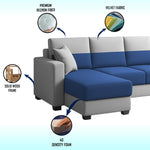 Aden LHS 6 Seater L Shape Sofa Set with 2 Puffy for Living Room (Blue Grey Colour Fabric) Premium Fabric Sofa Set for Living Room