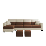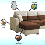 Aden LHS 6 Seater L Shape Sofa Set with 2 Puffy for Living Room (Cream Brown Colour Fabric) Premium Fabric Sofa Set for Living Room