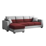 Aden LHS 6 Seater L Shape Sofa Set with 2 Puffy for Living Room (Maroon Grey Colour Fabric) Premium Fabric Sofa Set for Living Room