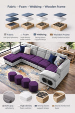 Auren 12 Seater L-Shape Comfortable Sectional Sofa Set with Ottoman for Living Room (Black Grey) Premium Fabric Sofa