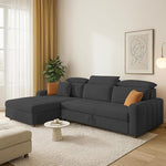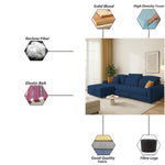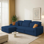 Casaliving Gagnon LHS 4 Seater L Shape Corner Sofa Cum Bed for Living Room (Blue Fabric) Premium Fabric Sofa