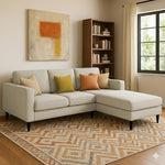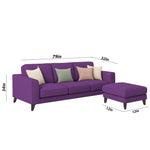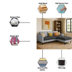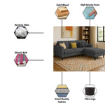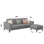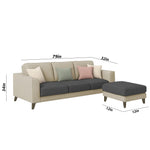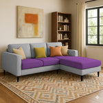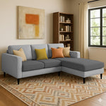 Grayon 3 Seater L Shape Convertible Sofa Set for Living Room, 3 Seater & Ottoman Modular Sectional Couch for Small Space (Grey Dark Grey Colour) Fabric