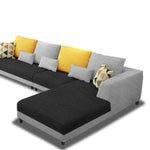 Casaliving Margreta RHS 6 Seater L Shape Sofa Set for Living Room (Black Grey Fabric) Premium Fabric Sofa