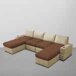 Rone 6 Seater L-Shaped & U-Shaped Sofas Set for Living Room – (Cream Brown Colour Fabric) Premium Comfort Sofa